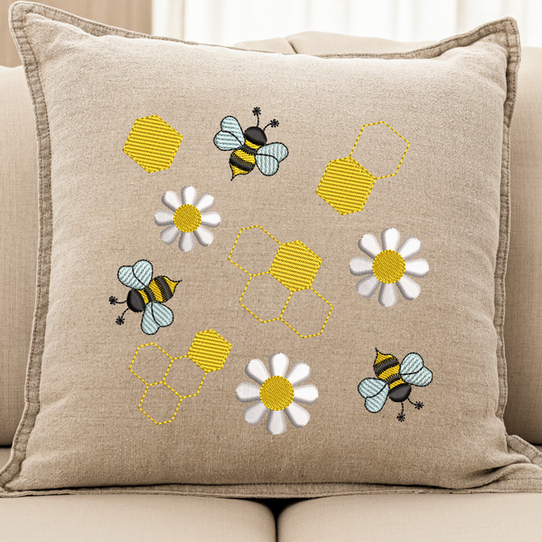Product Name: Bee and Daisies Embroidery Design