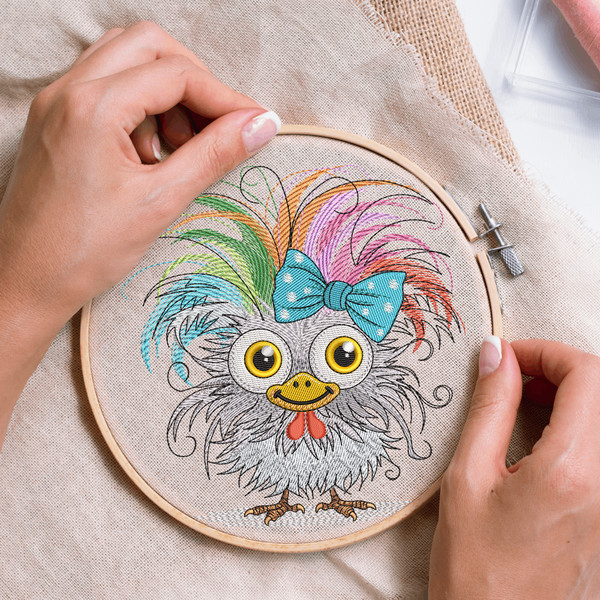 Product Name: Funny Crazy Chicken Embroidery Design