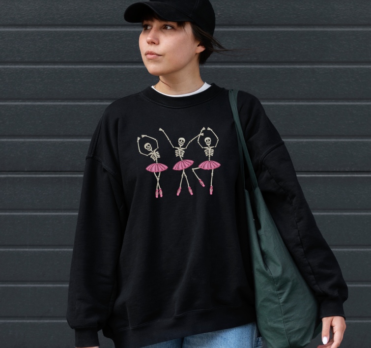 Halloween Dancing Ballerina Skeleton Embroidery