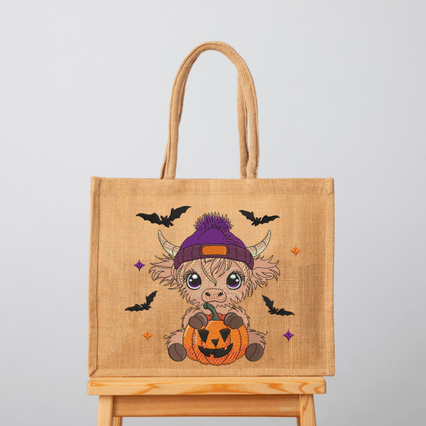 Halloween Highland Cow Pumpkin Embroidery Design Halloween Highland Cow Pumpkin Embroidery Design