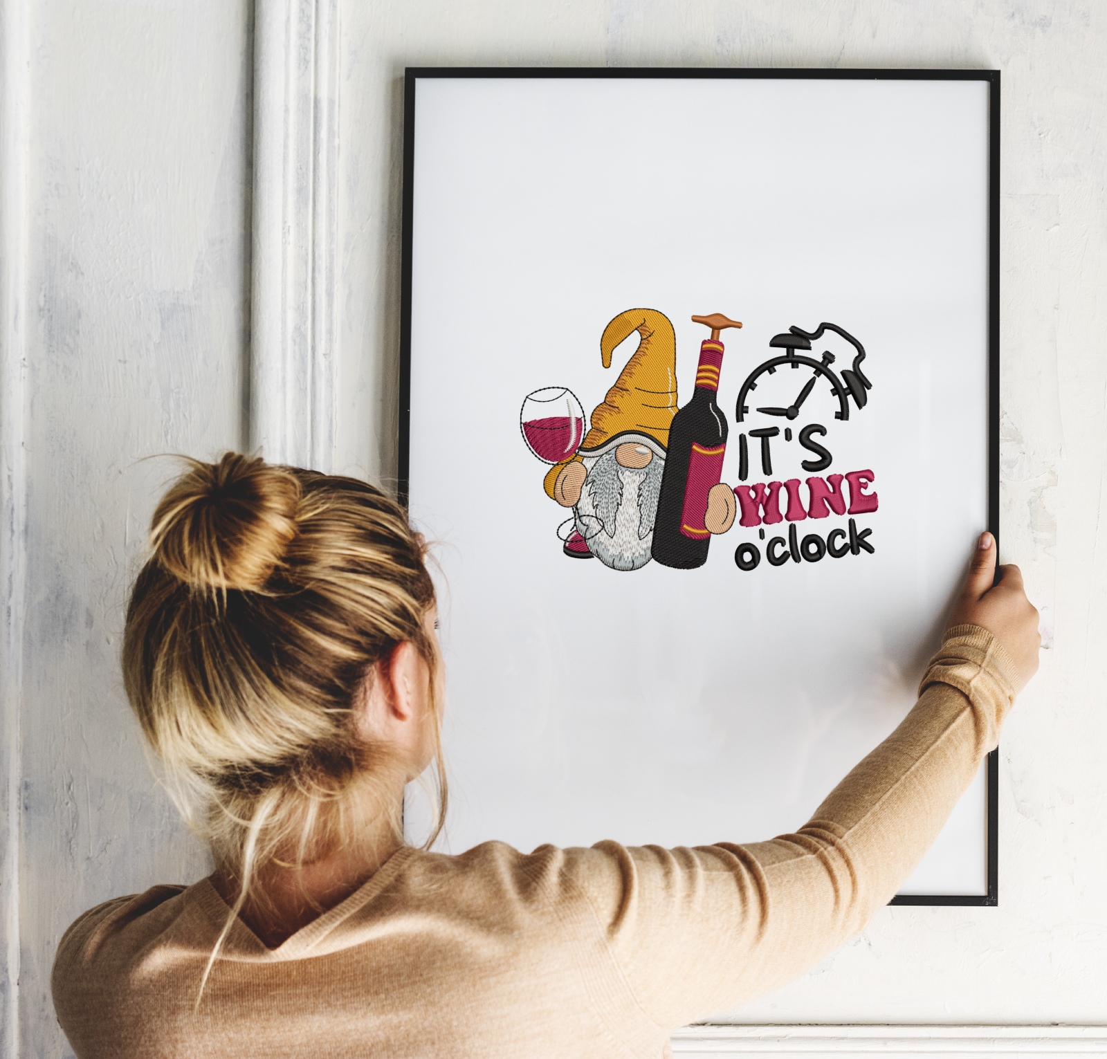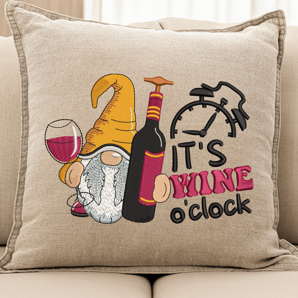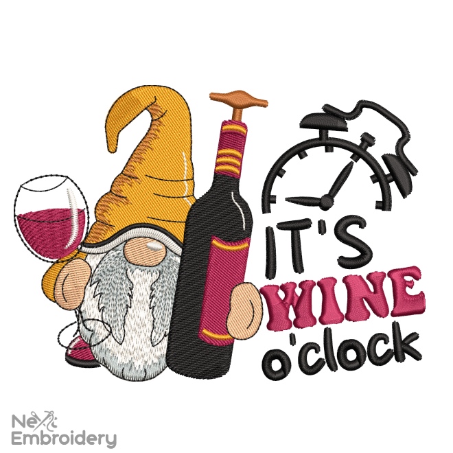 Product Name: It's Wine o'clock Gnome Embroidery Design