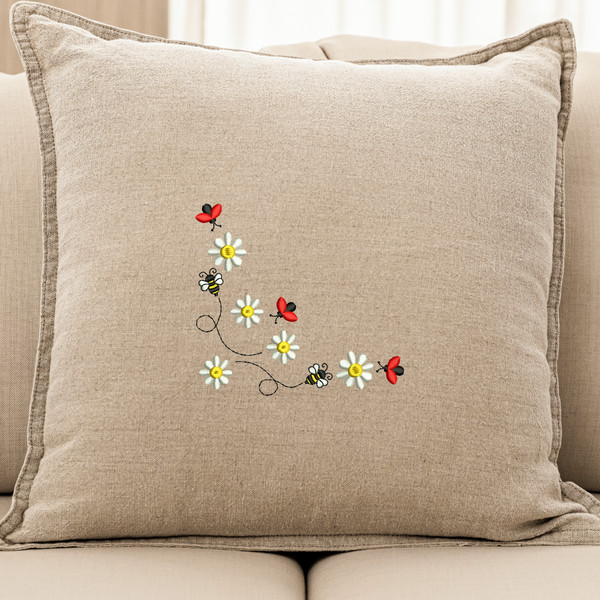 Product Name: Ladybug and Bumblebee Corner Embroidery Design
