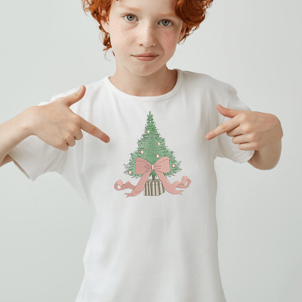 Product Name: Pink Bow Christmas Tree Embroidery Design