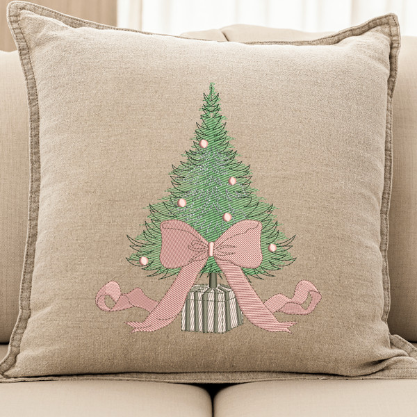 Pink Bow Christmas Tree Embroidery Design